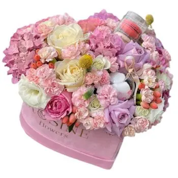 Siyah kadife kalp kutu içerisinde 7 aded mini ayıcık ve 23 adet Ferrero Rocher çikolata