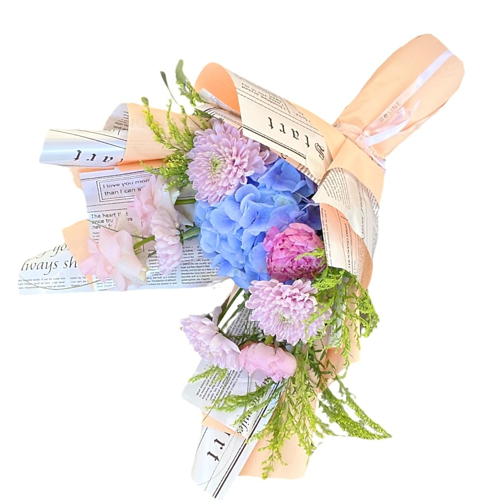 Mavi ortanca, krizantem ve güllerin senfonisi sevdiklerinizin yüzünü güldürecektir. İster sebepsiz, isterse de özel gün için şahane seçimdir