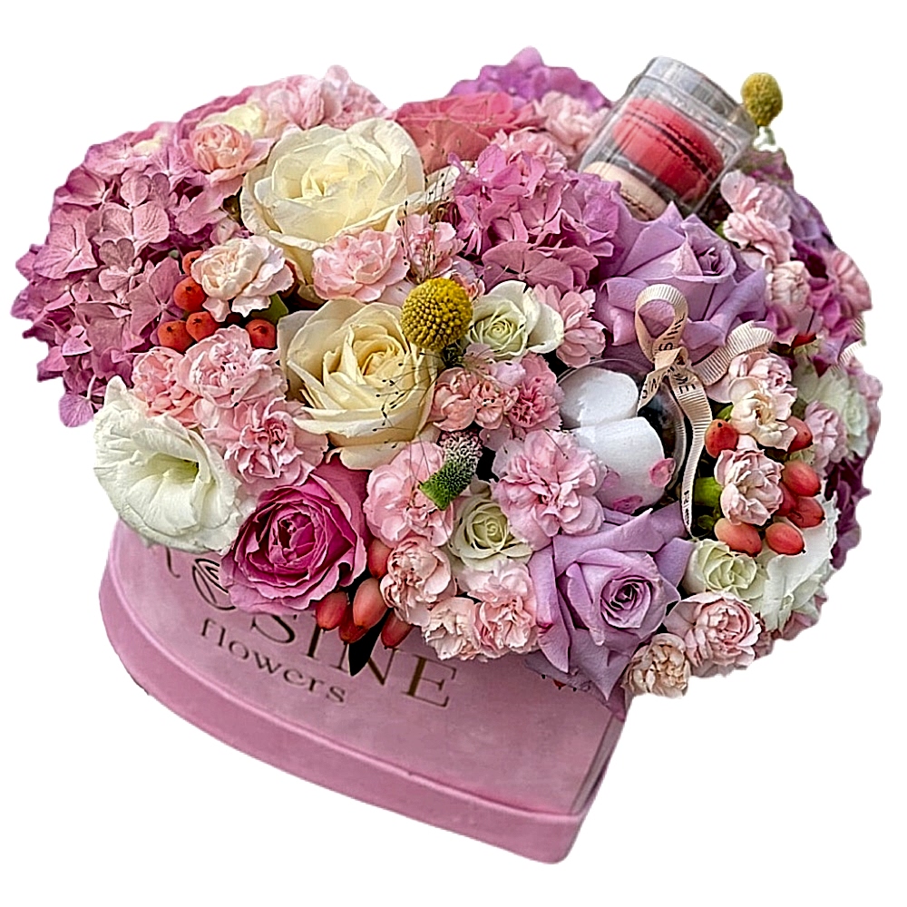 Kadife yüzeyler her zaman için yumuşaklık ve sıcaklık hissi uyandırmıştır kişide. Bu nedenle de kıyafetlerde, mobilyalarda, eşyalarda sıklıkla kullanılmıştır. Kadifenin yumuşak dokusunu ön plana çıkardığımız ürün Rosabella; sevdiğinizekalbinizdeki yumuşaklığı göstermeniz için bir fırsat sunuyor size… Kadifemsi çiçek yapraklarının sıcaklığı, mavi kadife kutu temasıyla kombinlendiğinde ortaya görsel bir şölen çıkıyor. 25 cm kutu içinde beyaz, pembe, mor güller, hüsnüyusuf, karanfil, hypericum, veronica, craspedia bulunmaktadır. Mis kokulu çiçeklerin arasında sevimli ve nefis makaronlar var. Çiçeklerin renk tonu ise stoktaki ürün durumuna göre ayarlanabilir. Bu ürünün gönderimi yalnız İstanbuladır.
