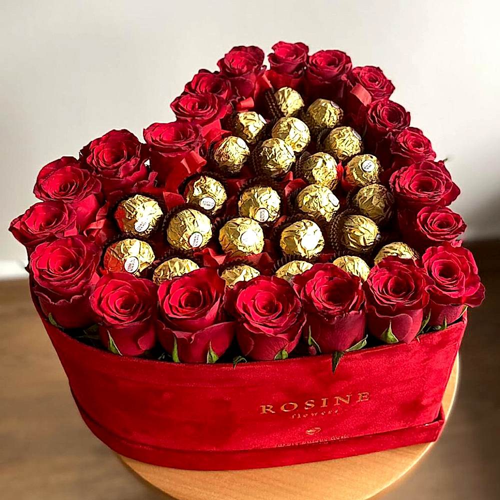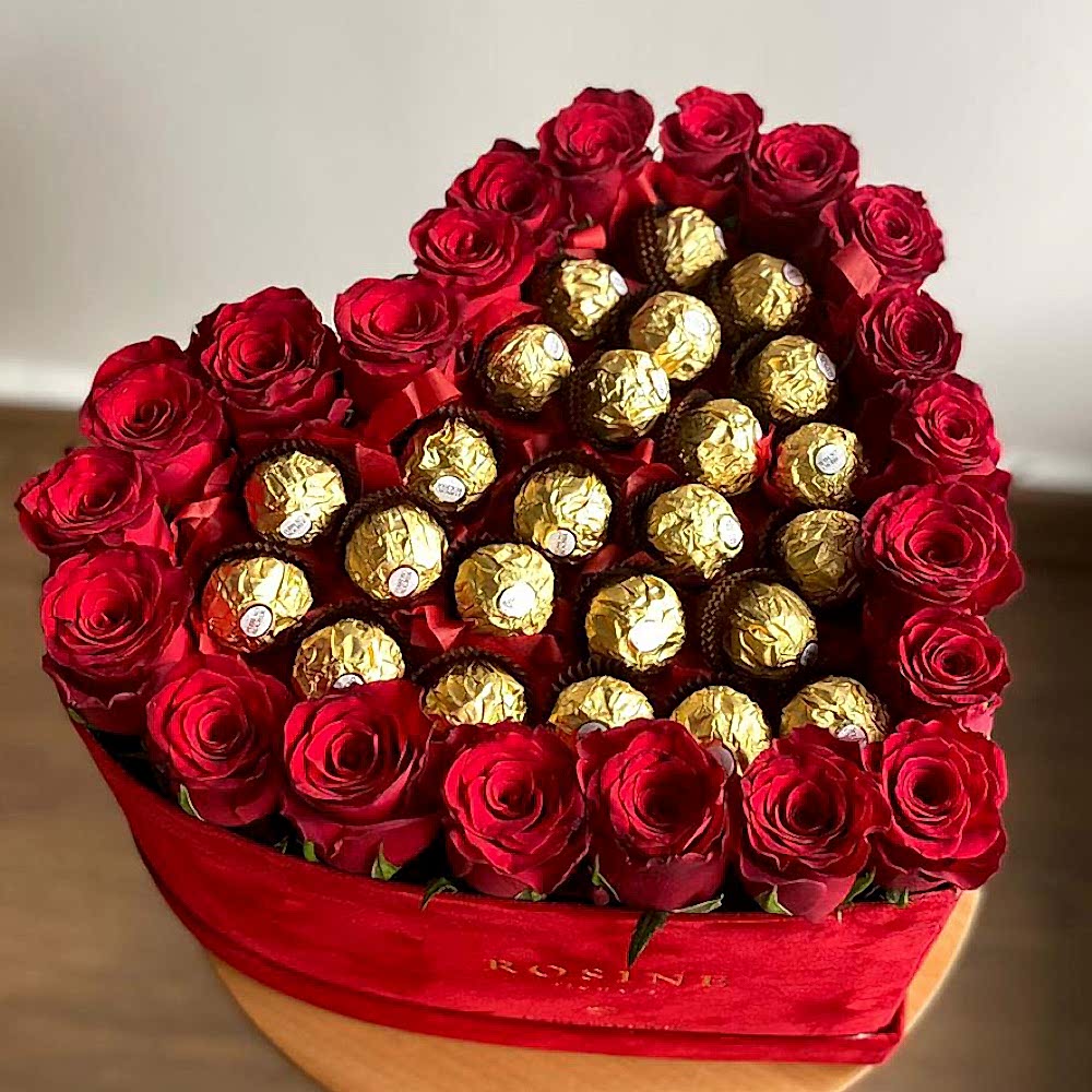 Ayrıca, bu özel hediyenin içinde 23 adet Ferrero çikolatası da bulunuyor. Ferrero çikolataları, kalp kutunun romantik atmosferini tamamlayarak, sevdiklerinize tatlı bir sürpriz yaşatma fırsatı sunuyor.